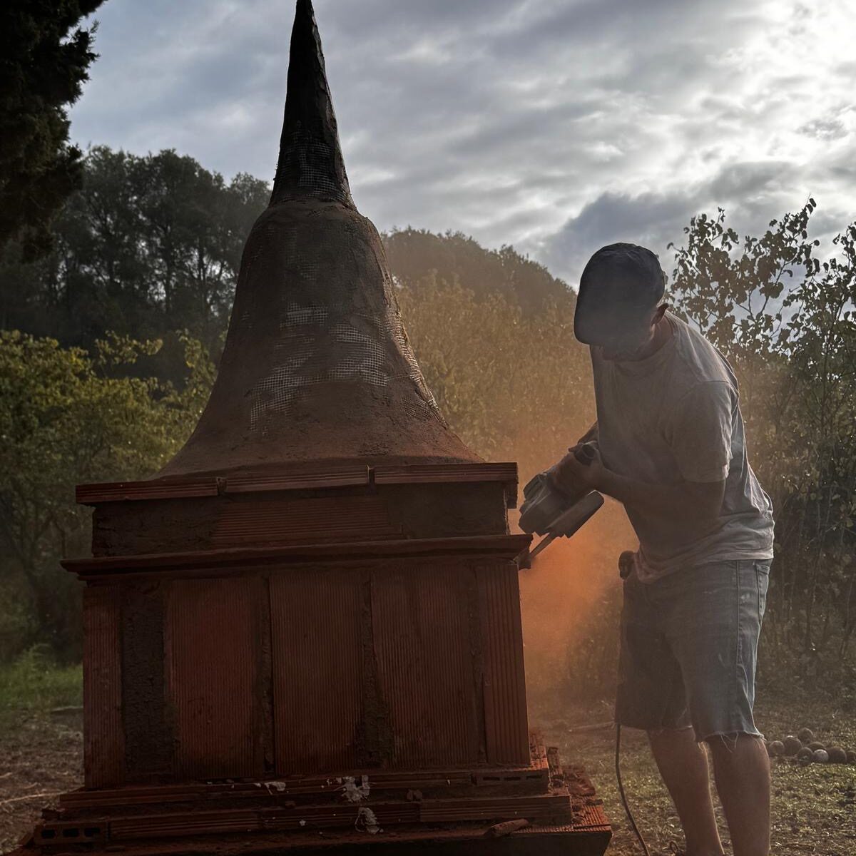 Juan Castell, an old friend and Mitra from the Valencia Sangha, designed and built, with the help of others a beautiful new addition to Suryavana. It is a modest size, around a metre and half base and just over two metres tall. You have to gently look up to it, when standing near, which feels appropriate. It’s the first outwardly evident Buddhist structure here at Suryavana.