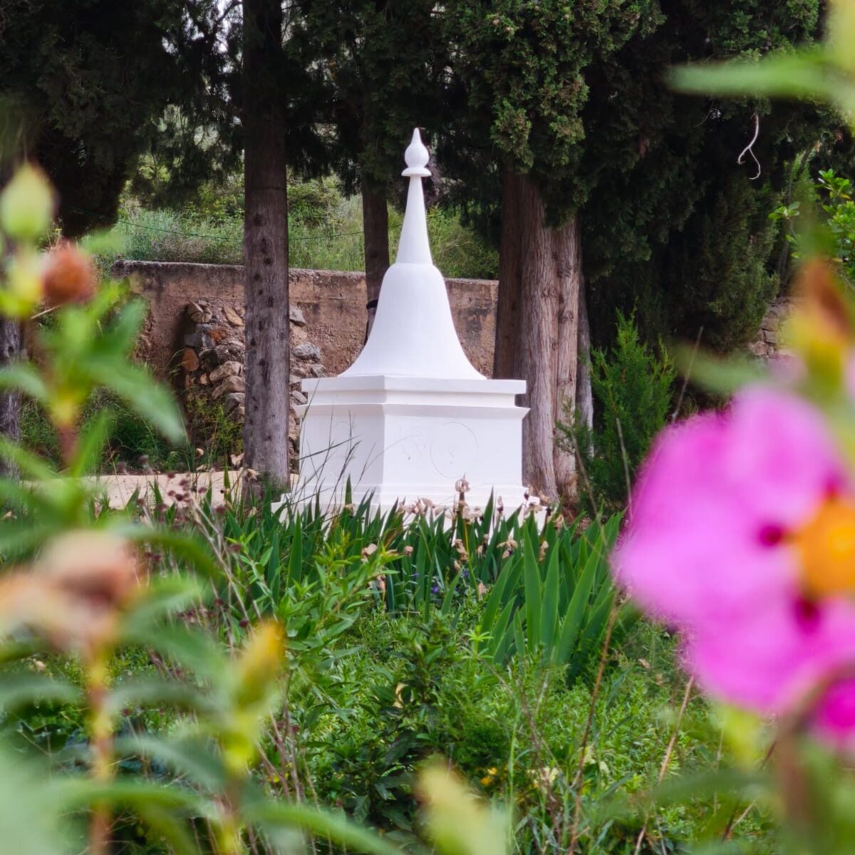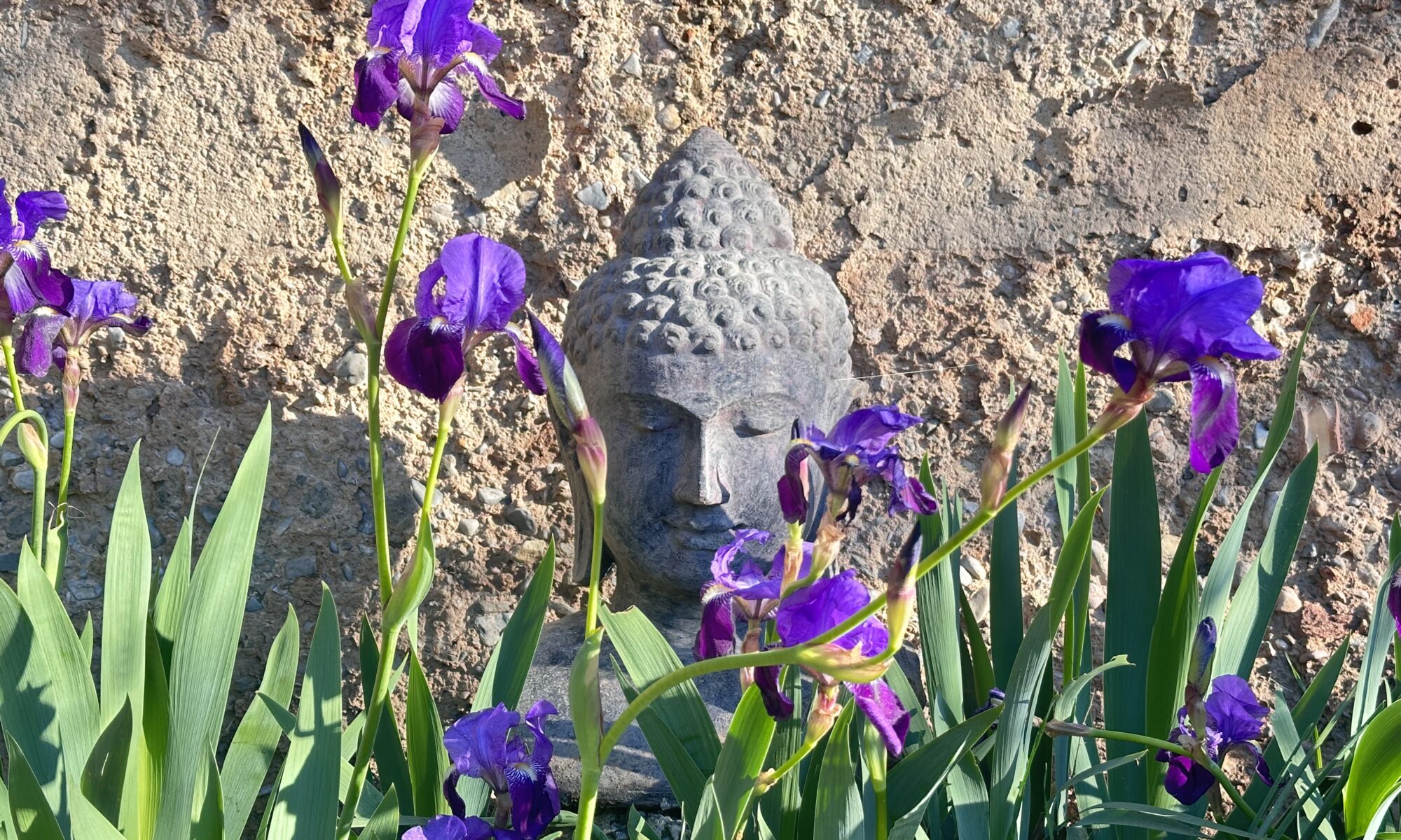 El Buda entre flores. Los Iris aparecen en unos pocos momentos del año. Os ofrezco un jardín plantado en el desierto