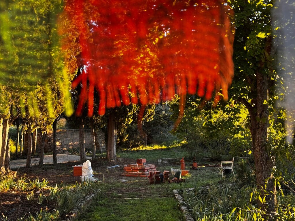 Así, está situada a unos 20 metros de la Sala de Meditación, visible al acercarse a la Masía desde la entrada, pero sutilmente escondida entre los árboles y cipreses de nuestros jardines.