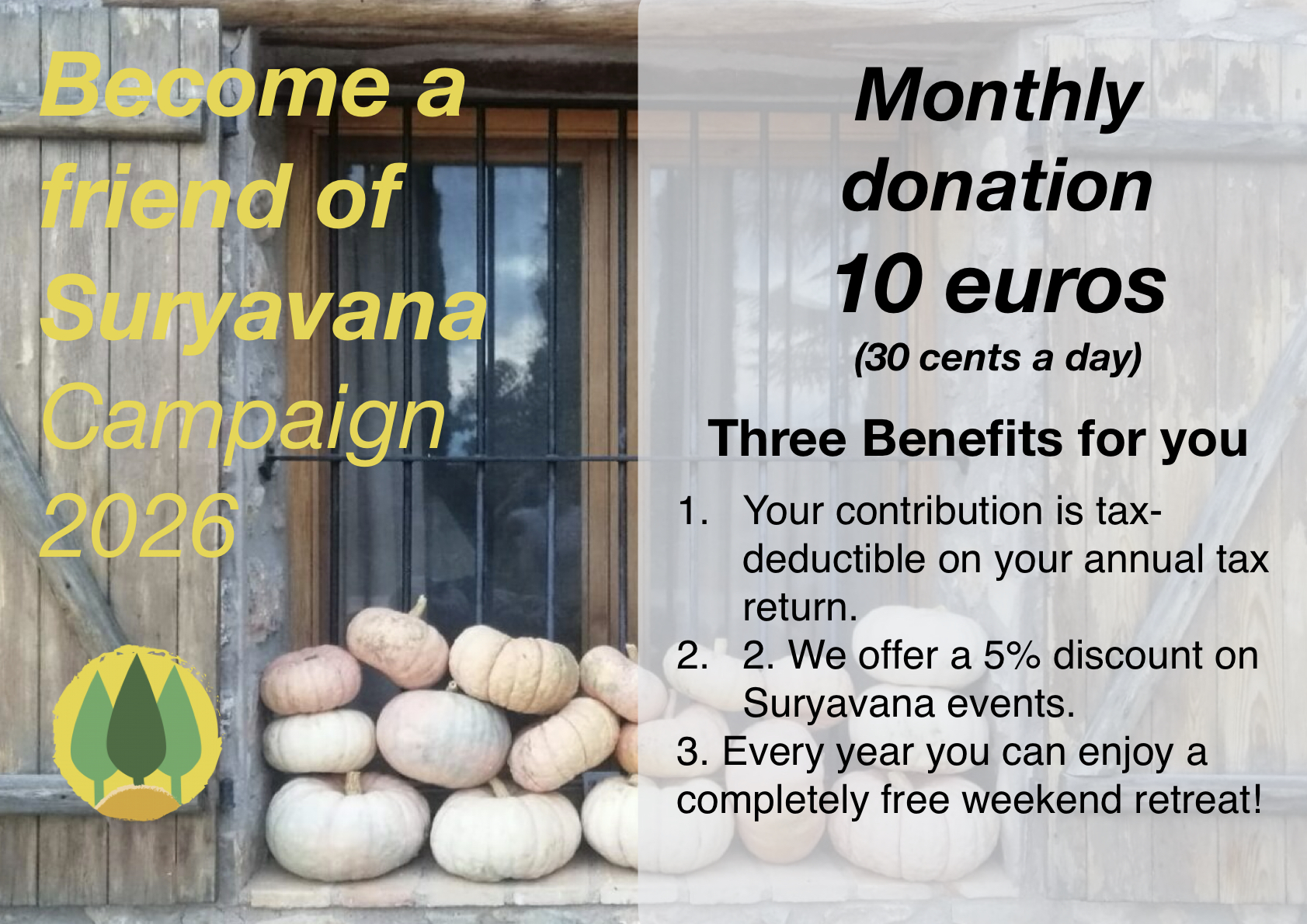 -Campaign to raise monthly donations for Suryavana